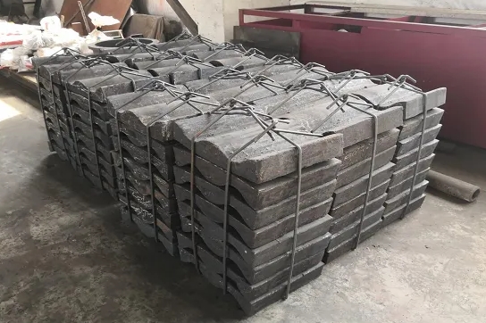 雙介質(zhì)淬火中合金鋼襯板經(jīng)科學合理的合金元素配方,使該襯板具有良好的理化性能,硬度HRC45-55以上,沖擊韌性值25J以上,使用壽命是高錳鋼的2倍以上。能夠承受巨大的沖擊力度。在工作中能長期保持襯板的表面形狀,以保障磨機穩(wěn)定提高5%以上的產(chǎn)量.